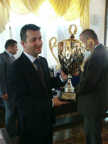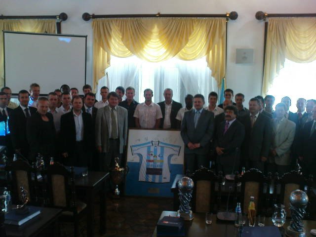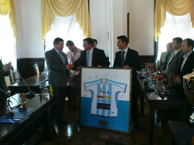 Dzisiaj odbyło się spotkanie zawodników, trenerów i działaczy naszej sekcji z Prezydentem Rzeszowa. W zastępstwie Tadeusza Ferenca (który nagle musiał udać się do Warszawy na naradę w ministerstwie) honory pełnił Stanisław Sieńko. Pogratulował on piłkarzom Stali z okazji awansu do II ligii. Wszyscy piłkarze, trenerzy i działacze otrzymali od Prezydenta statuetki i okolicznościowe książki. Wręczył również okazały puchar. Do gratulacji dołączył się przewodniczący Podkarpackiego ZPN Kazimierz Greń.
