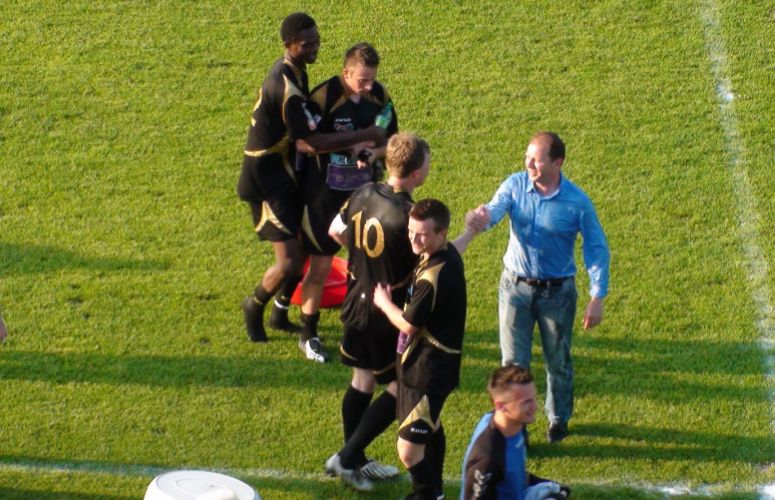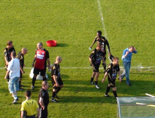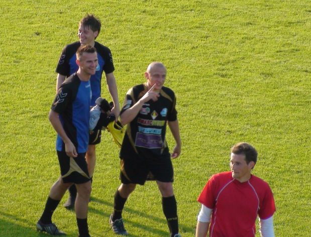 Po zwycięskim meczu w Wolbromiu piłkarze zebrali gratulacje od Zarządu ... I nagle pojawił się pomysł ... który szybko znalazł