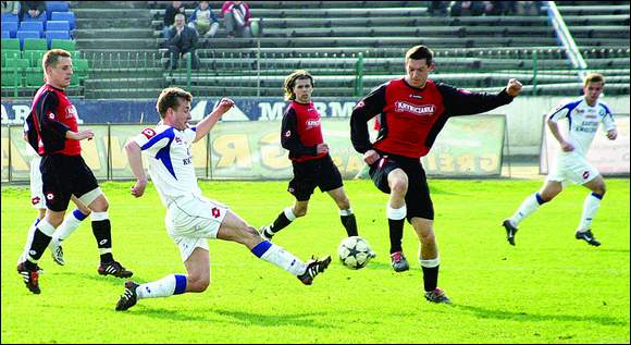 Ten mecz mógł się równie dobrze skończyć w 17. minucie. Potem stalowcy grali nonszalancko i zmarnowali cztery dobre sytuacje strzeleckie (Michał Zajdel, Wojciech Fabianowski, Karol Wójcik i Krzysztof Szymański), a coraz bardziej dochodzący do głosu goście nie potrafili przedostać się pod bramkę Rafała Pomianka. Najlepszą szansę miał w 44. minucie Arkadiusz Bałuszyński, ale jego strzał z powietrza pewnie obronił bramkarz Stali.