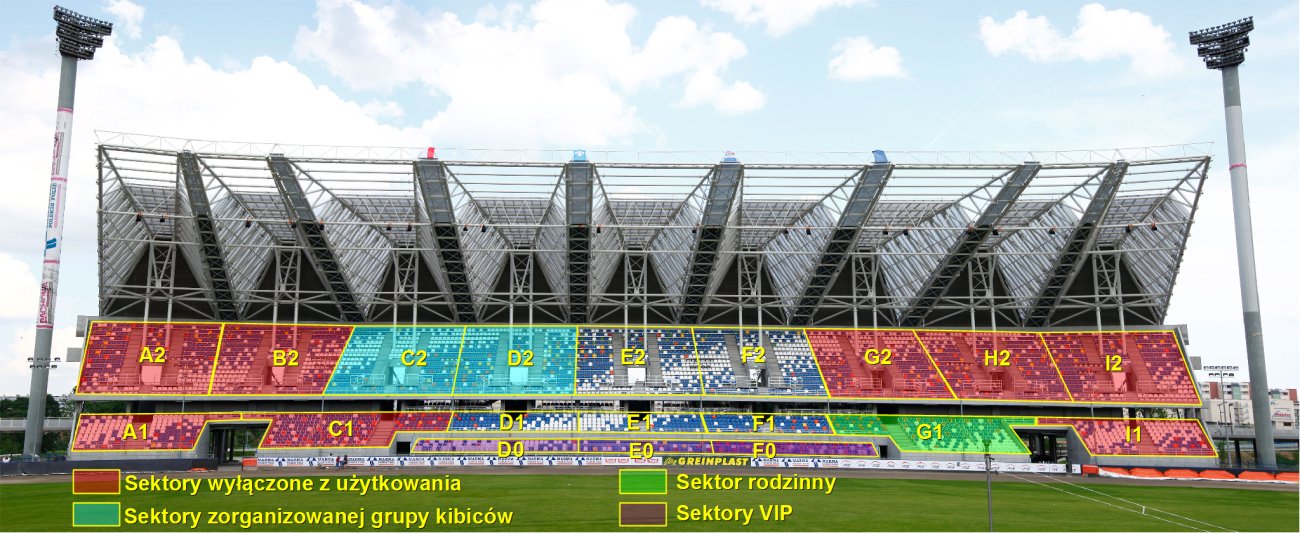 Zapraszamy wszystkich kibiców do zapoznania się z układem sektorów i informacją o przeznaczeniu ich w trakcie sobotniego meczu z Olim